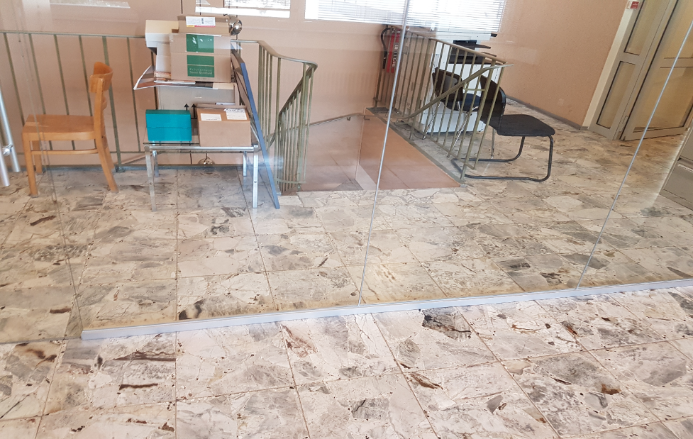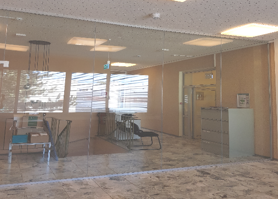 Amontega baut raumhohe Glaswände für das Büro und Arztpraxisgen . Anders als bei herkömmlichen Pfosten-Riegel-Konstruktionen, wird das Glas hier ausschließlich in horizontal verlaufende Profile verbaut. Vertikal verlaufende Profile gibt es bei Amontega Glaswänden nicht. Die Glasscheiben werden rahmenlos montiert. Die Glaswand ist so vollständig transparent. Es entstehen Raumgliederungen, passend zur aktuellen Architektur, mit hohen Ansprüchen an die Akustik.