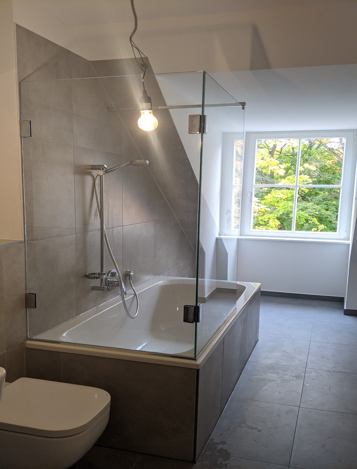 Im Bad geht kein Weg vorbei an einer Duschabtrennung wie Duschkabine aus Echtglas (ESG= Einscheiben – Sicherheitsglas ) für eine Duschwanne oder Badewanne.