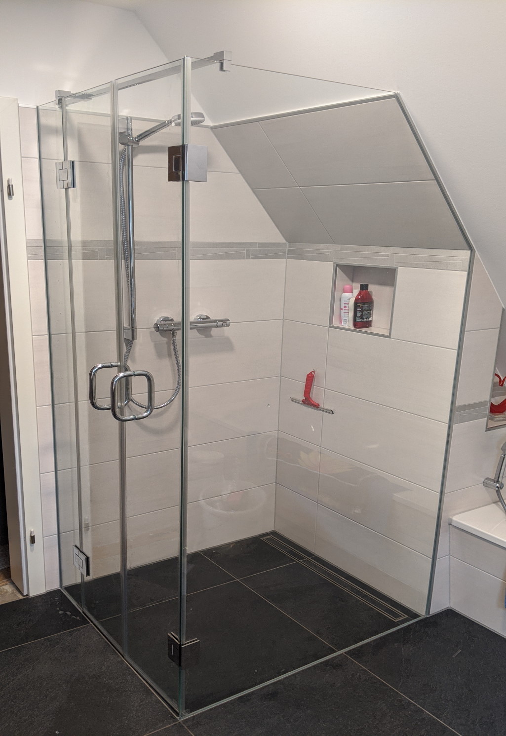 Duschkabinen und Duschabtrennungen führen wir in verschiedenen Variationen, Türmechanismen und Gläsern als rahmenlose. Alles in Echtglas (Einscheiben-Sicherheitsglas ESG) und auf Wunsch mit einer wasserabweisenden Beschichtung, die die Anhaftung von Kalk und Schmutz auf dem Glas minimiert und die Reinigung dieser deutlich erleichtert. Dank unserer Maßanfertigung erhalten Sie selbst für ausgefallene Einbausituationen Ihre passende Duschwand nach Maß. Unterschiedliche Türvarianten wie die normale Duschtür, die nach innen und außen öffnende Pendeltür, die Schiebetür oder die nach innen öffnende Falttür stehen zur Auswahl.
